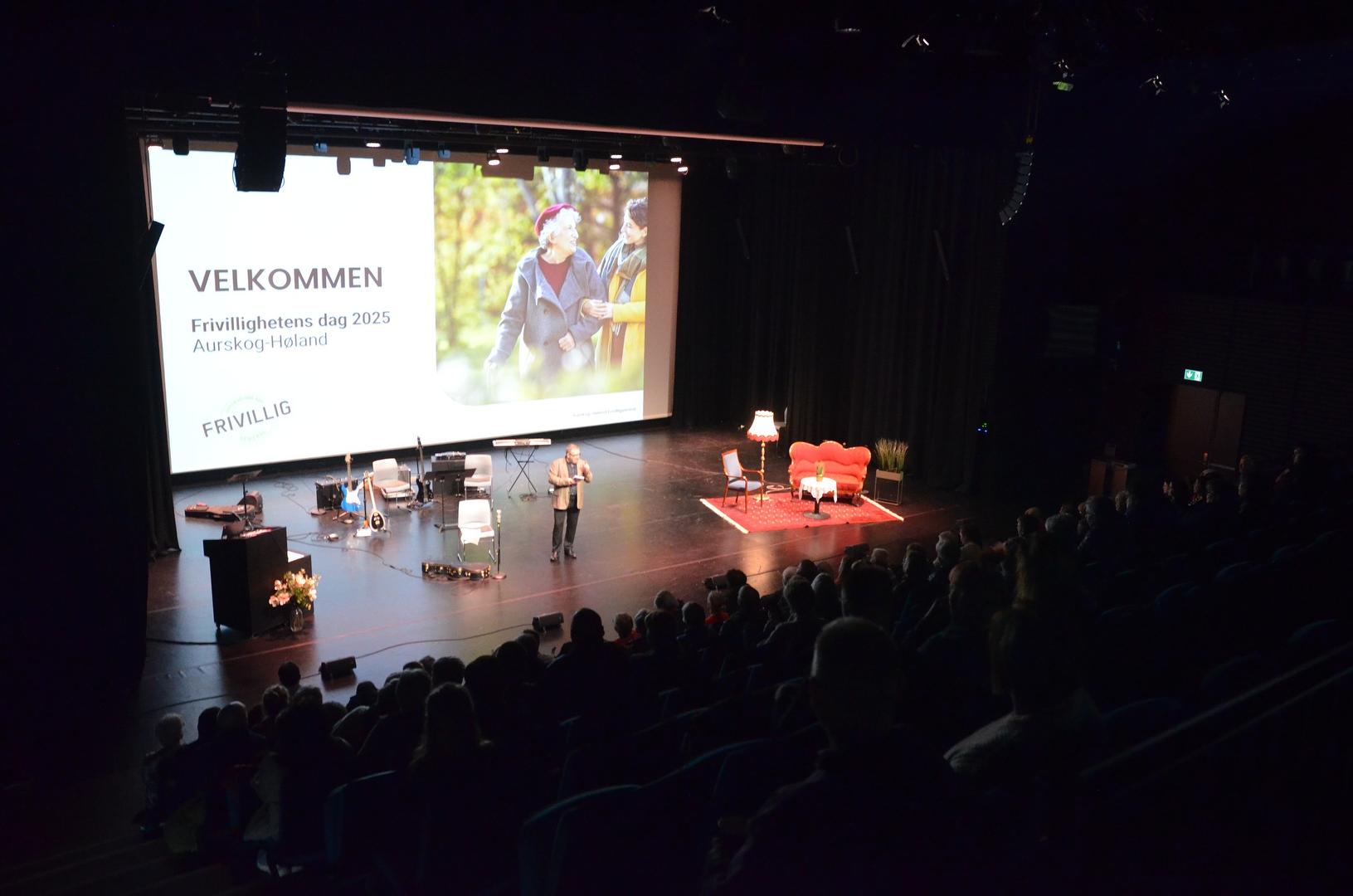 Feiring av Frivillighetens dag i KulturArena 4. desember, med underholdning, sofaprat og utdeling av Frivillighetsprisen til Per Even Rønaas.